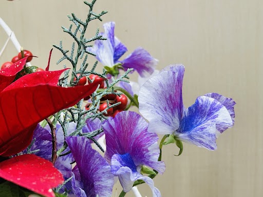 気の向くままに、発信する本日の受付花です。 今年もあとわずか。 クリスマスな雰囲気を表現してみました
